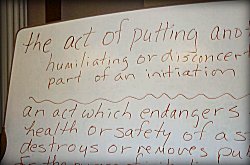 of this class will be HAZ 112 (Hazing 112). It will meet every week on